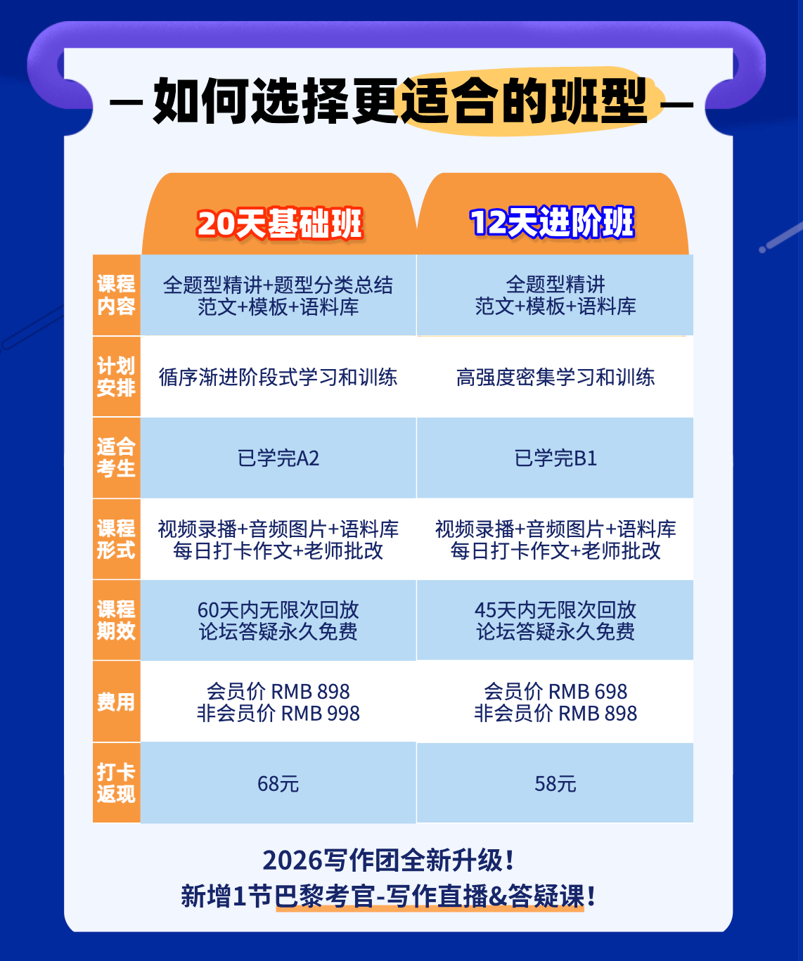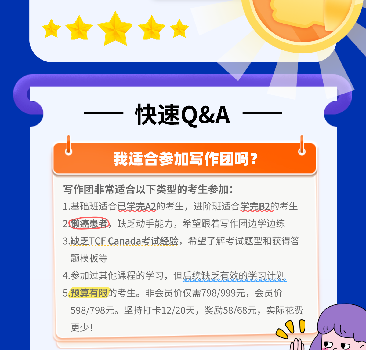 ⭐️ 新增1节【巴黎总部考官-写作直播&答疑课】直击TCF Canada评分标准!